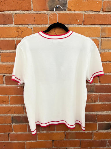 This knit short sleeve top showcases a soft, lightweight texture with a relaxed drop shoulder silhouette, a button down front where the fabric natu...