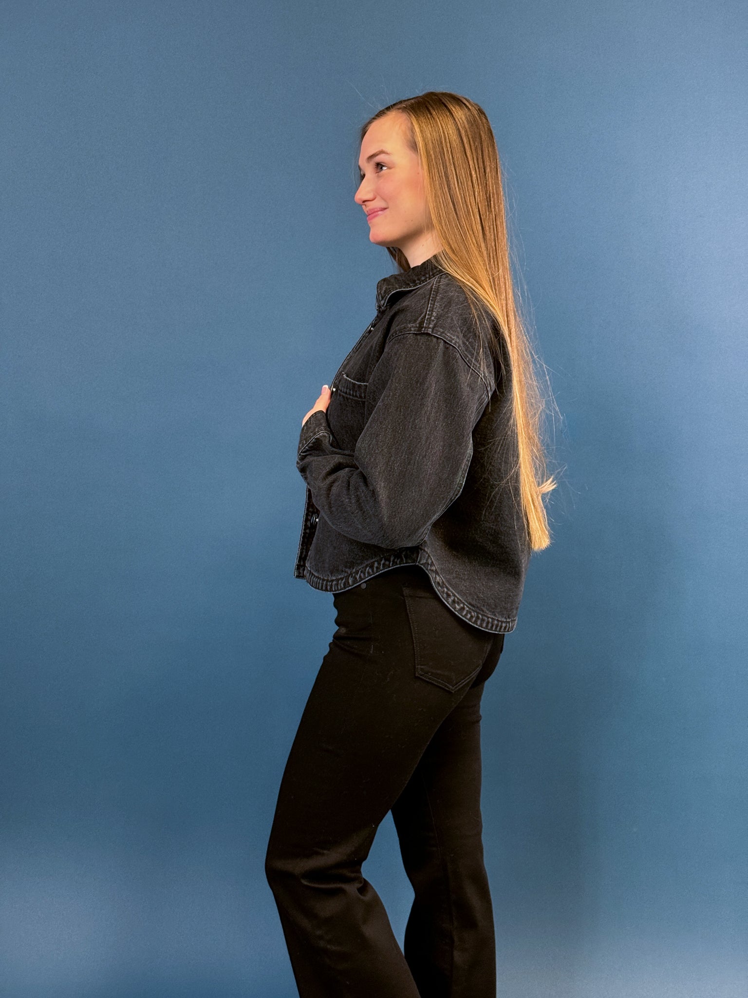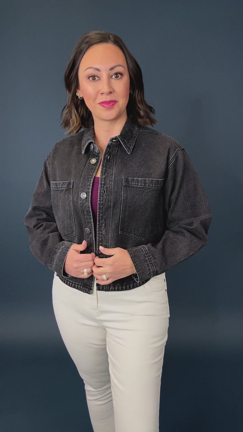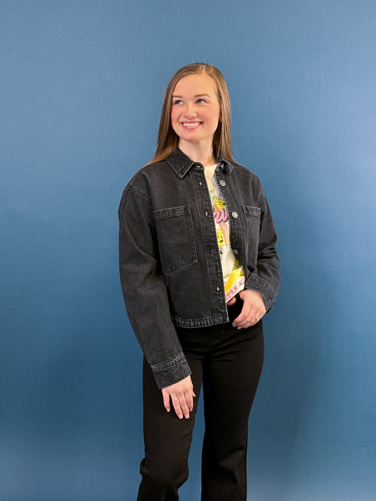 Soft and ultra comfortable, the Cropped Denim Jacket is sure to become an everyday fave. This cropped and classic jacket will give you that cool and confident look you can wear season after season.