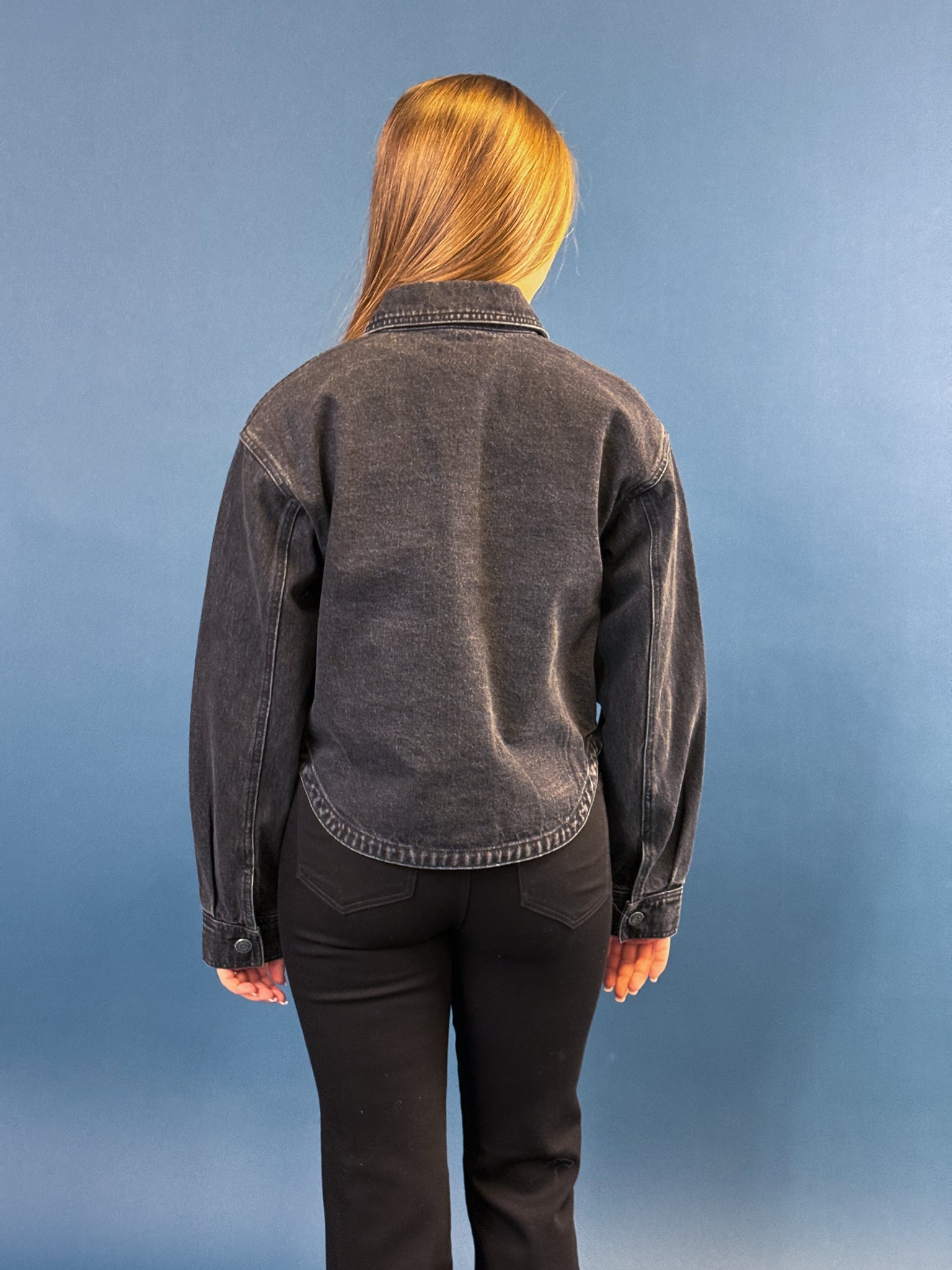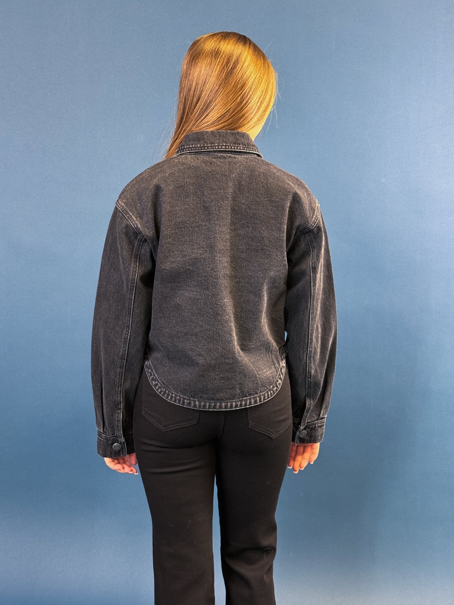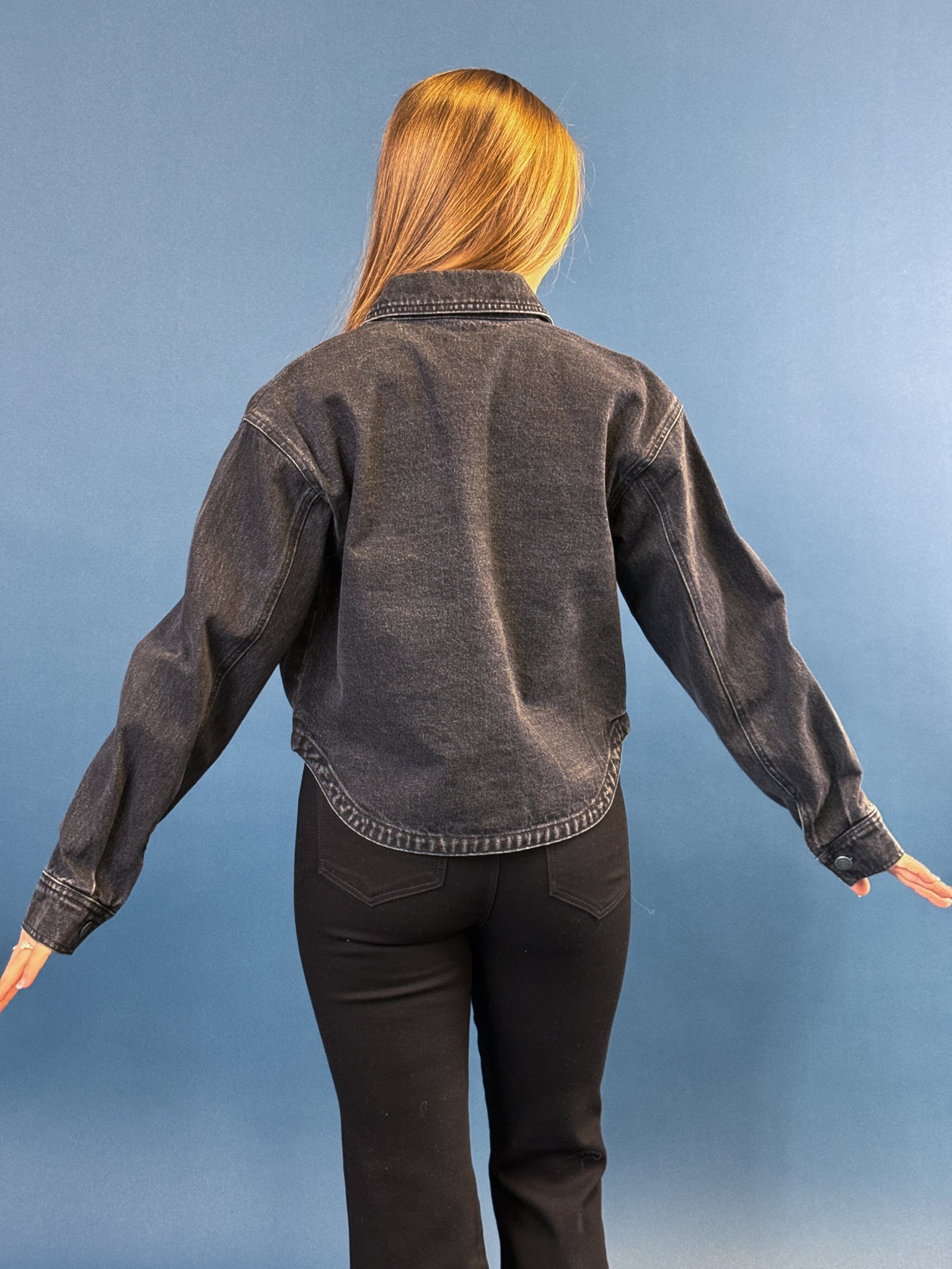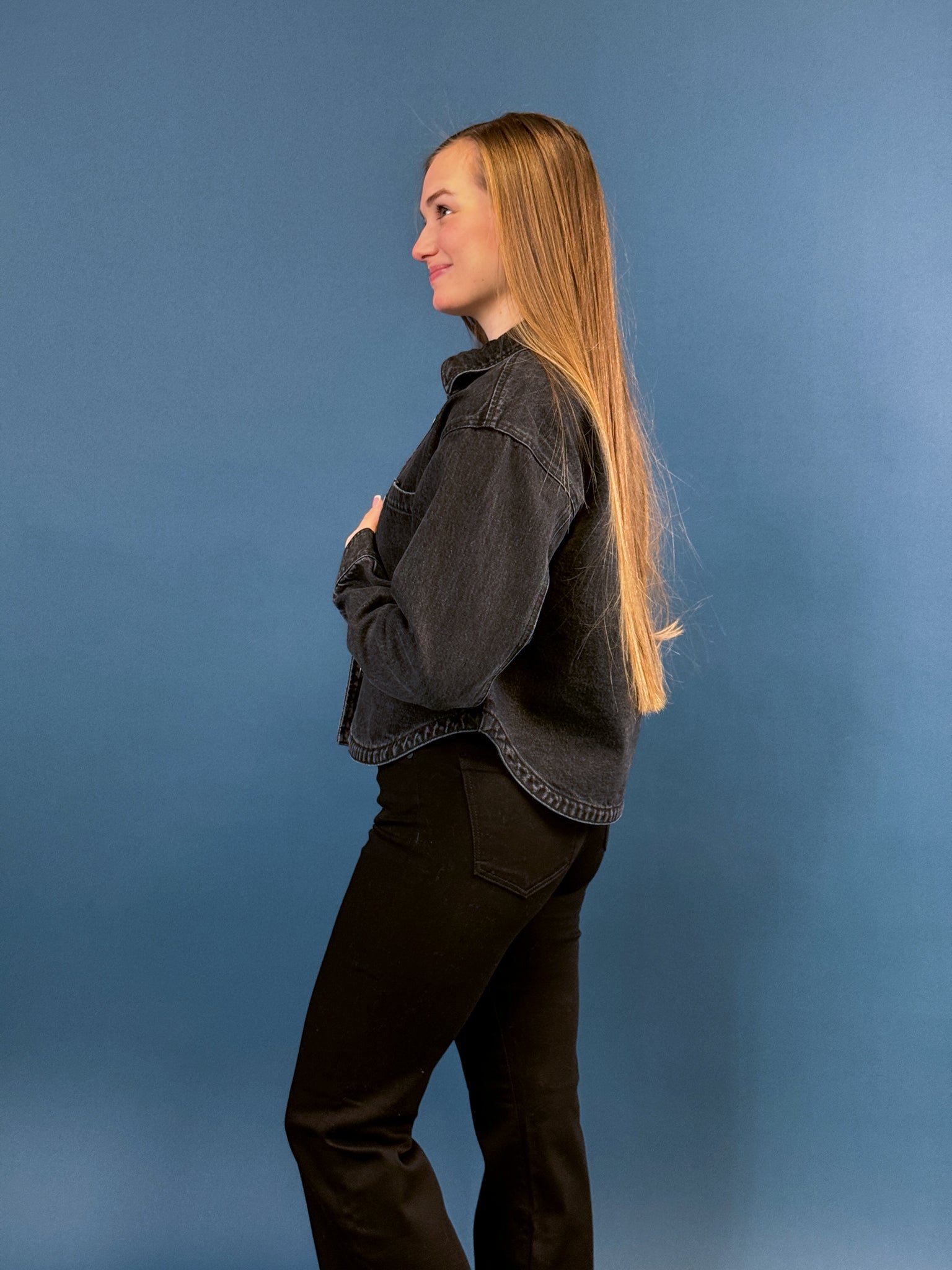 Soft and ultra comfortable, the Cropped Denim Jacket is sure to become an everyday fave. This cropped and classic jacket will give you that cool and confident look you can wear season after season.