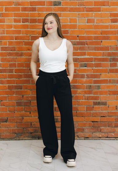 A sweatpant so soft you can leave the house feeling put together + comfy, featured in our super comfy scuba fabric with an elastic waistband and du...