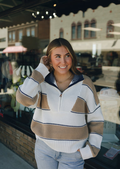 1/4 Zip Camel Stripe Sweater