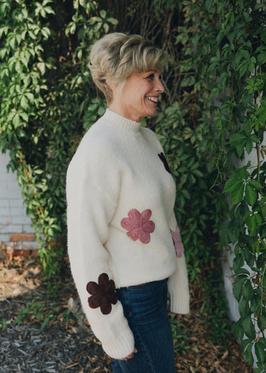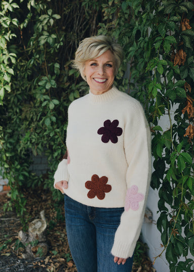 $80.00| /Brighten your wardrobe with the Apricot Cornelli Embroidered Big Flower Sweater, a cozy hug decorated with cheerful, oversized floral embroidery. T...