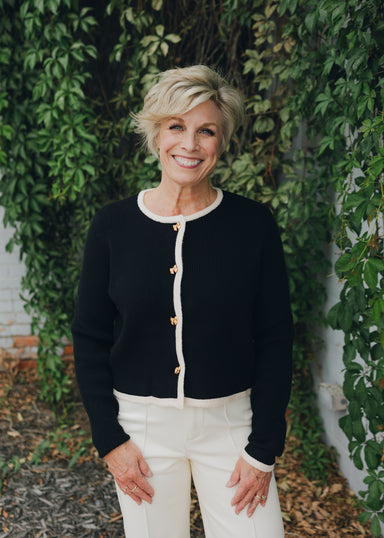 Elevate your holiday style with this charming rib knit cardigan, complete with an adorable bow button detail that adds instant personality. The sof...