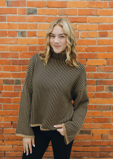 Stay warm and stylish this season with our Tan Stripe Turtleneck Sweater. Made with high-quality materials and a classic turtleneck design, this sw...