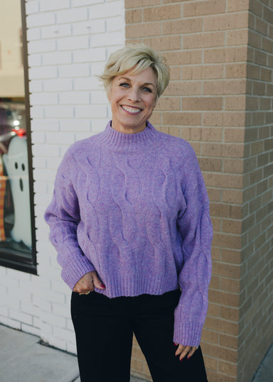 Update your cold-weather wardrobe with this twist cable knit jumper. Designed in a mid-weight knit. A mock neck Balloon sleeves Classic ribbed tr...