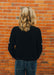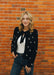Add a fun twist to your outfit with this black cardigan featuring cute embellishments and a flirty tie-front design. It’s the perfect playful layer to brighten up any look while keeping you cozy and stylish.