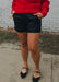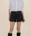 These shorts are crafted from soft, smooth coated material for a sleek, edgy look. They effortlessly complement both boots and ballet flats, making them a versatile addition to any wardrobe.