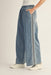 These washed denim pants combine comfort and style with a playful twist. Featuring an elastic waist and wide legs, they offer effortless movement and a relaxed fit. The stripe band side accent adds a fun pop of detail, while handy side pockets keep your essentials close. Perfect for casual days with a little extra flair!