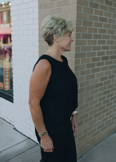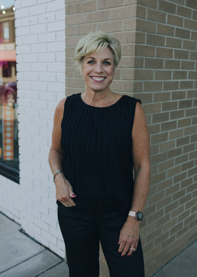 This sleeveless halter boasts a striking scalloped finish for a touch of sophistication. The front pintuck details add texture and definition to th...