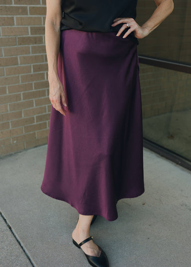 Slip into effortless elegance with this long satin skirt, designed to captivate with its fluid silhouette and lustrous sheen. Featuring a high-wais...