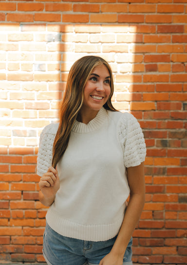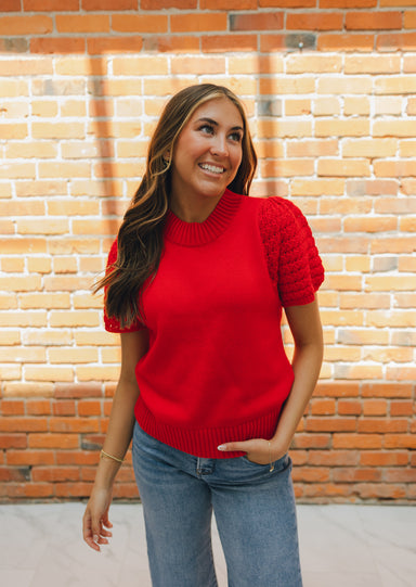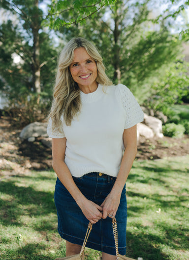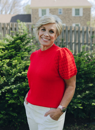 Introducing the Molly Bracken Crochet Sleeve Top, a chic twist on the classic T-shirt. With short sleeves and openwork cuffs, this top brings a tou...