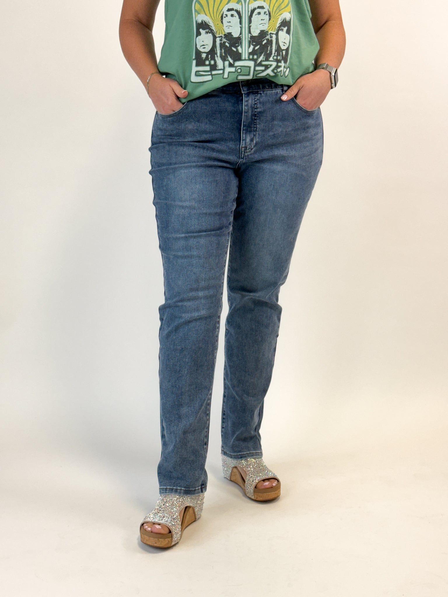 Tribal Sophia Curvy Straight Jeans-Dark Vintage