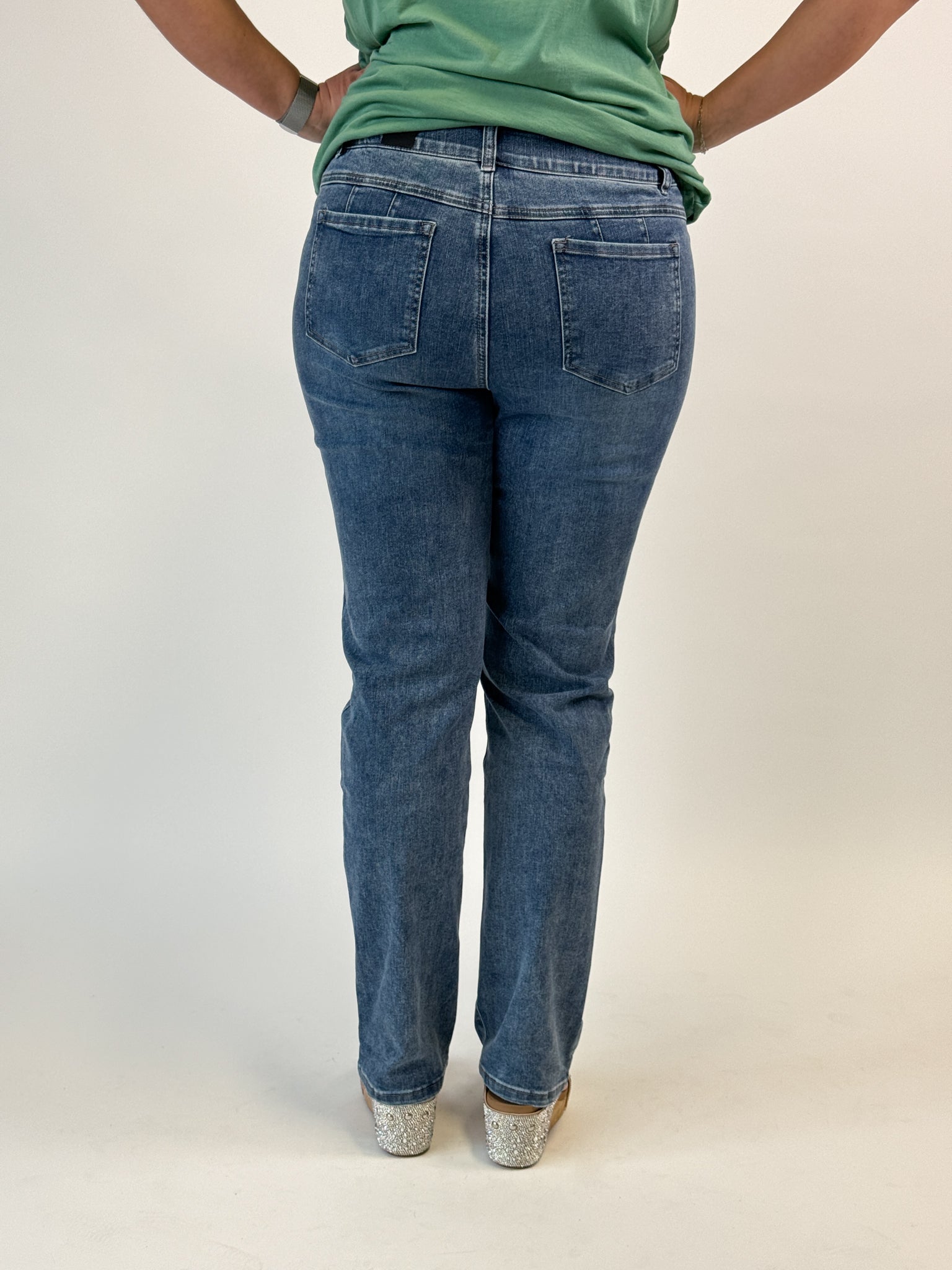 Introducing the NEW and improved Sophia curvy fit straight leg jeans! Made with Repreve polyester. New improvements but the same reliable fit; elastic waist band to cinch in your waist, flattering darting above the back pockets to give you that extra lift, soft stretch denim with an easy recovery, mid rise five pockets and 32 inch length, they can do no wrong.