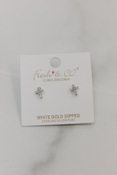 Enhance your everyday look with our Mini CZ Cross Earrings, beautifully crafted with sparkling cubic zirconia stones for a touch of understated ele...