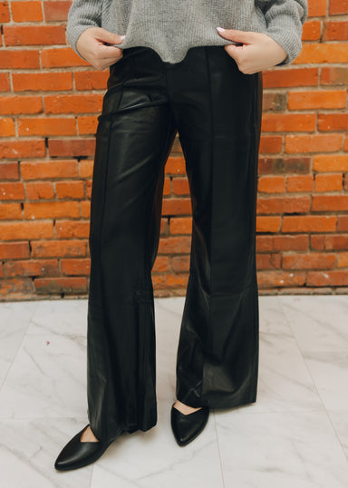 Step into the spotlight with these Black Leather Flair Pants—where retro vibes meet modern edge. Crafted from sleek leather, they feature a flatter...