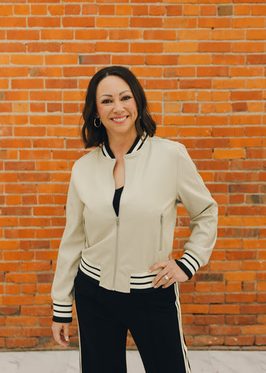The Fiona Jacket reinvents the classic bomber with minimalist appeal. This cropped style is finished with tonal trim and lightweight texture, perfe...