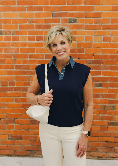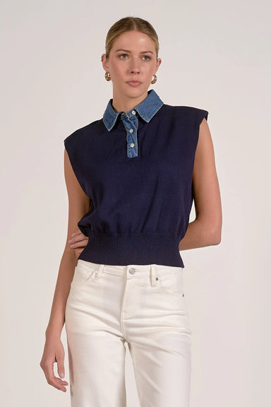 Polished meets playful in the Piper sweater — a modern take on the cap sleeve silhouette. Crafted in a soft knit with a structured mock neck and de...