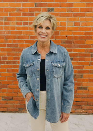 View full detailsTrust us, you need this denim jacket in your life. Made with our super soft Tencel Lyocell, the Jackie Jacket is a wardrobe staple! Button fron...
