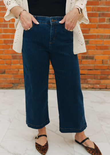 Embrace effortless style with the Tribal Audrey Hugging Wide Crop Denim. This flattering silhouette combines a comfortable hugging fit through the ...