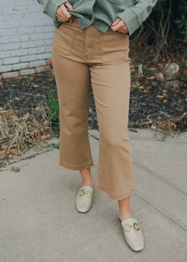 These high rise wide leg jeans feature our signature Fab Ab pockets for a flattering fit. Made with super stretchy fabric and finished with a trend...