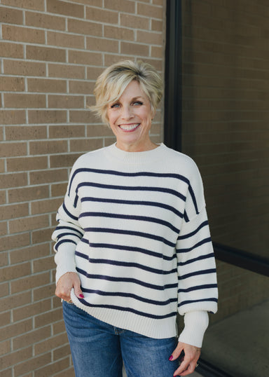 Elevate your everyday wardrobe with this timeless Stripe Pullover Sweater. Featuring classic horizontal stripes that flatter any figure, this versa...