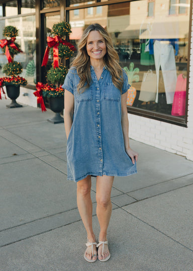 Effortless style meets everyday practicality in this charming short sleeve mini dress. The flattering cut and soft fabric make it perfect for casua...
