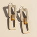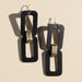 The Blakely is a chain-inspired earring featuring two square cut-out shapes in smooth black leather. This lightweight earring features a gold accent piece affixing the shapes together.
