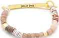 With an empowering phrase of affirmation engraved on each metal bar, these bracelets are more than meets the eye. Intentionally designed with hand cut glass beads from Nepal & energetic semi-precious stones to create an inspirational bracelet for multi-season wear. Each bracelet is accented with gold or silver dipped beads and includes a bonus charm with matching engraved affirmation, perfect to add to a keychain!