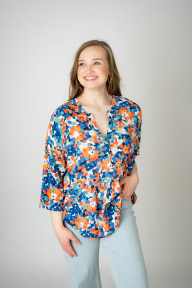 Add a pop of playful femininity to your wardrobe with the Molly Bracken Floral Detail Sleeve Top. Featuring delicate floral detailing on the sleeve...