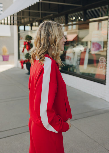 Elevate your active-chic style with this modal scuba zip-up jacket, crafted from silky smooth and lightweight fabric. Featuring sleek color contras...