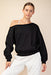 French Terry Fleece Off Shoulder Top - Black