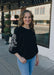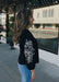 This black 3/4 sleeve top is finished with eye-catching soutache embroidery along the sleeves for a refined yet effortless look. Designed with a classic crew neckline and softly gathered sleeves with elastic cuffs, it blends comfort with subtle statement detail. Easy to dress up or down, it’s a versatile piece that adds interest to everyday styling.
