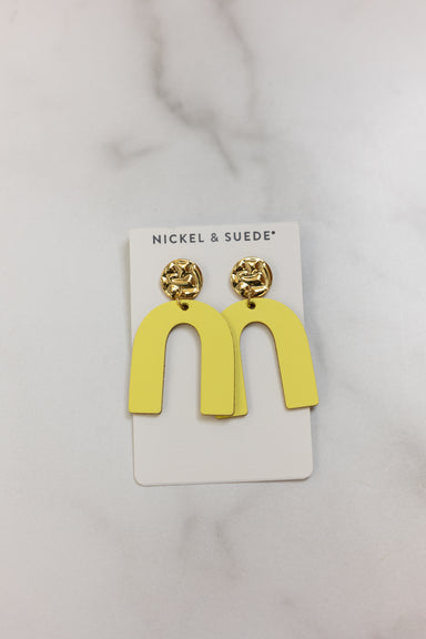 Beaus are lightweight statement earrings inspired by organic shapes. These leather earrings are available in bright citron yellow leather on s...