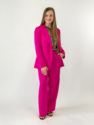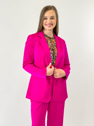 A bold colored blazer is a fun way to add some personality to a classic piece. Layer this Hot Pink Blazer over a bodysuit, white tee or tank and st...