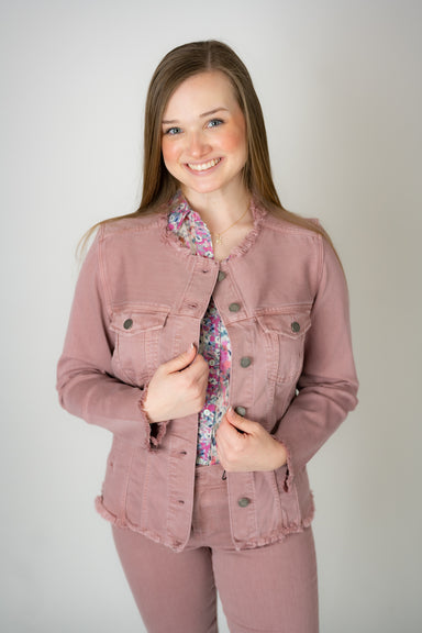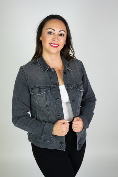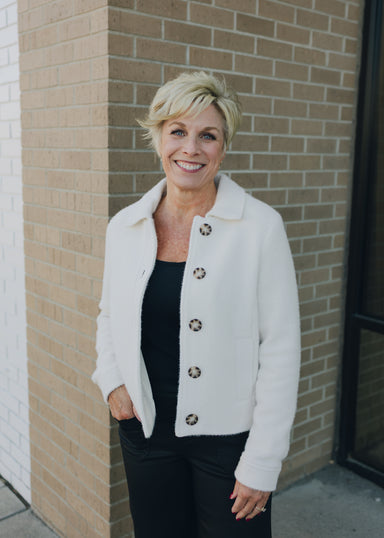 Complete your look with this casually chic button-front jacket, designed with a flattering fit and front welt pockets. Crafted from ultra-soft bouc...
