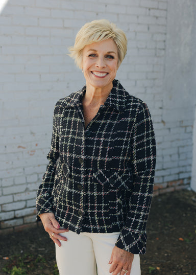 Our signature blazer with removable hood is now available in a beautiful knit plaid. Versatility at its best! Perfect for the woman who keeps it ca...