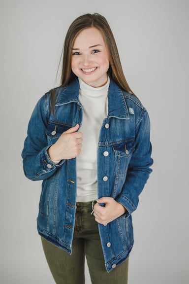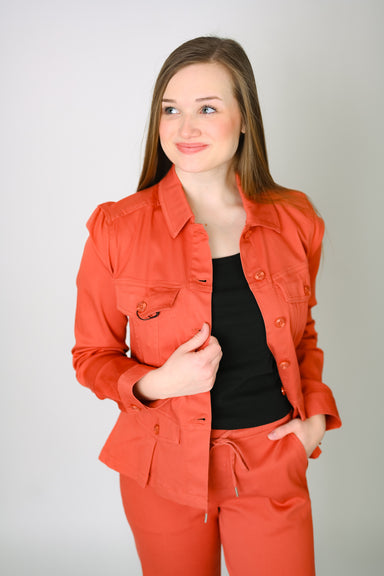 This shacket brings structure with an easy, boxy fit. Fully lined with chest flap pockets and an extended cuff detail, it’s the perfect throw-on pi...