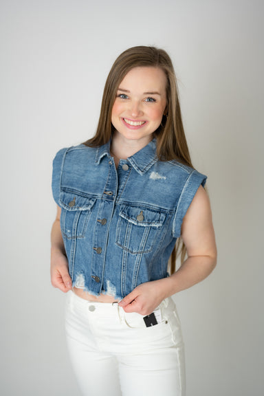 Add a little edge to your outfit with the Molly Bracken Leather Button Vest! This chic vest brings a fun twist to layering, featuring sleek leather...