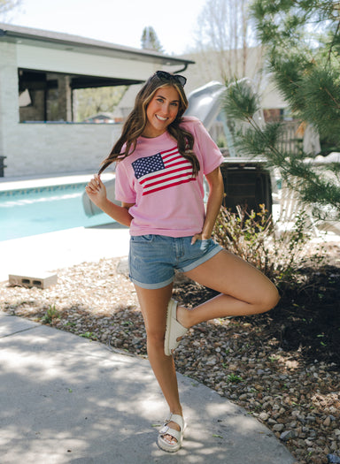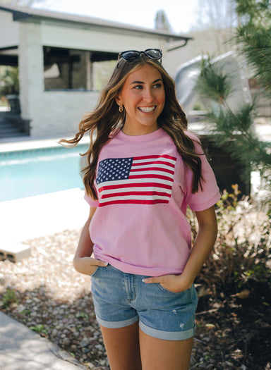 Wrap yourself in festive charm with our Pearl Bow Classic Sweatshirt. Featuring a bright red base and an oversized pink bow applique adorned with d...