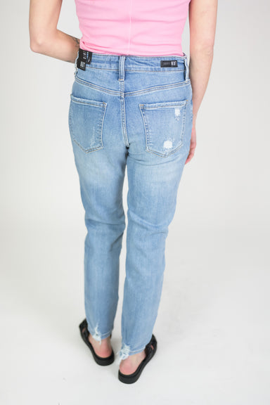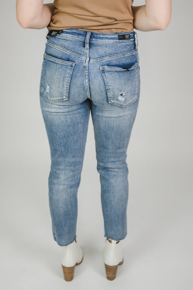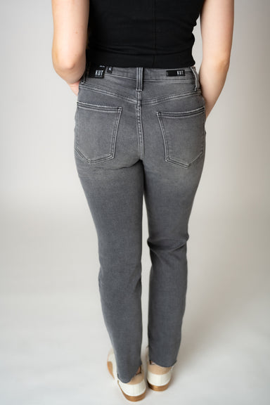 Give yourself a moment of style wearing the KUT Meg High-Rise Fab AB Wide Leg Raw Hem in Ecru. This wide-leg silhouette jean features belt loop wai...