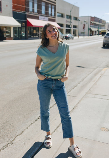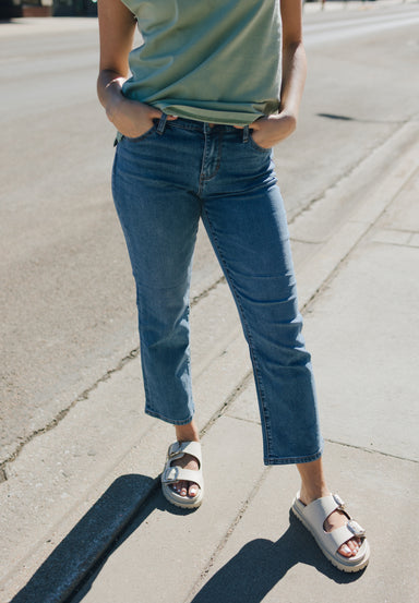 Flattering and functional, these high rise ankle straight leg jeans feature our signature Fab Ab pockets for a smooth fit and a touch of stretch fo...