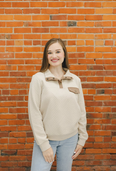 Stay cozy and stylish in our Quilted Jersey Pullover Sweatshirt, crafted from soft, breathable fabric for all-day comfort. The chic quilted texture...