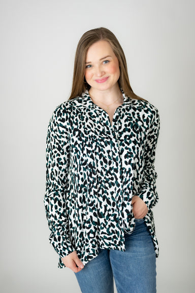 Unleash your wild side with this fabulous cheetah print top! Featuring eye-catching sequin fabrication that catches the light with every move, this...