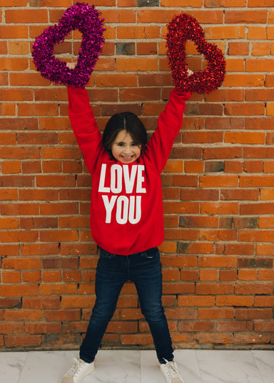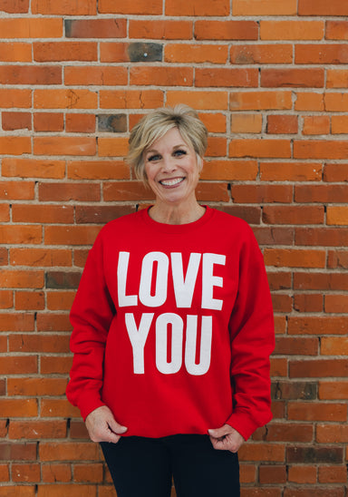 Show some love with our bold and cozy Love You Sweatshirt! This vibrant red sweatshirt features crisp, all-caps white lettering, making a statement...
