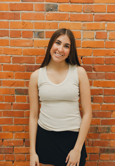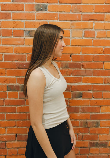 Our sleeveless ribbed fitted round-neck top is effortlessly chic and versatile. It is a must-have for your wardrobe. The ribbed texture adds dimens...