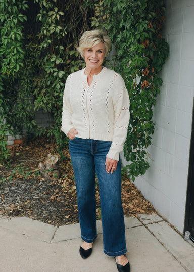 These high-rise wide-leg jeans feature Fab Ab and a trendy roll-up hem. Made with just the right touch of stretch and crafted in a perfect off-whit...
