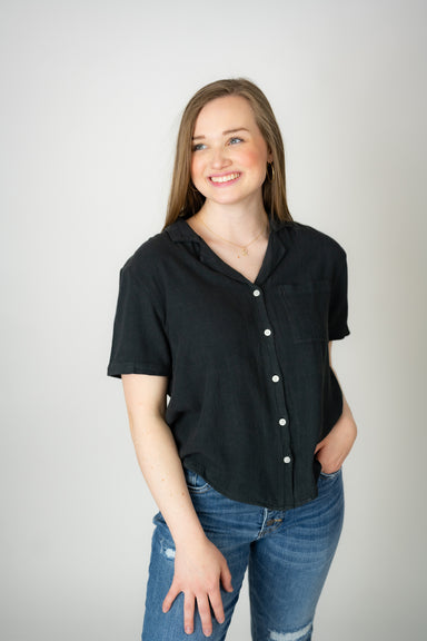 Totally timeless, this go-to top is featured in a soft fabrication and relaxed fit with a collared neckline and open placket detailing. Collared n...