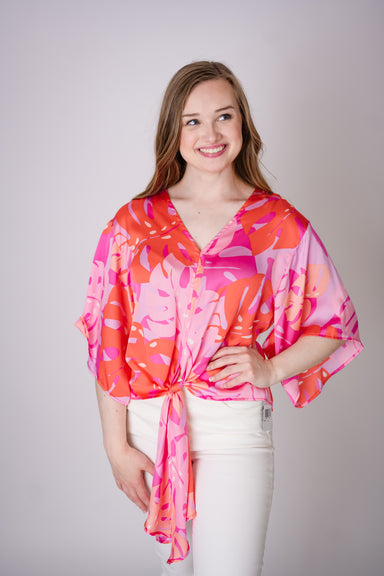 Designed in our exclusive black and white floral print, this woven blouse features a soft V-neckline with tie and tassel detail, delicate shirring,...