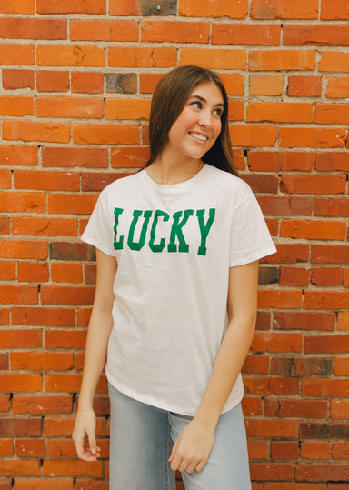 Get ready for St. Patrick’s Day in style with our Lucky T-Shirt! This festive tee is the perfect blend of casual and cute, featuring a fun "Lucky" ...