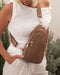 The Louenhide Bella Caramel Sling Bag is designed with both style and functionality in mind. Travel organisation has never been easier with the dual compartment design ensuring your valuables are within reach and secured safely with the zip closures. Featuring an adjustable and detachable strap allows you to choose the way your bag slings. Whether over your left or right shoulder, this faux leather sling bag ensures comfortable all-day wear. This small sling backpack adds a refined touch to any casual outfit, enhancing your personal style while offering ultimate practicality for your everyday travels.